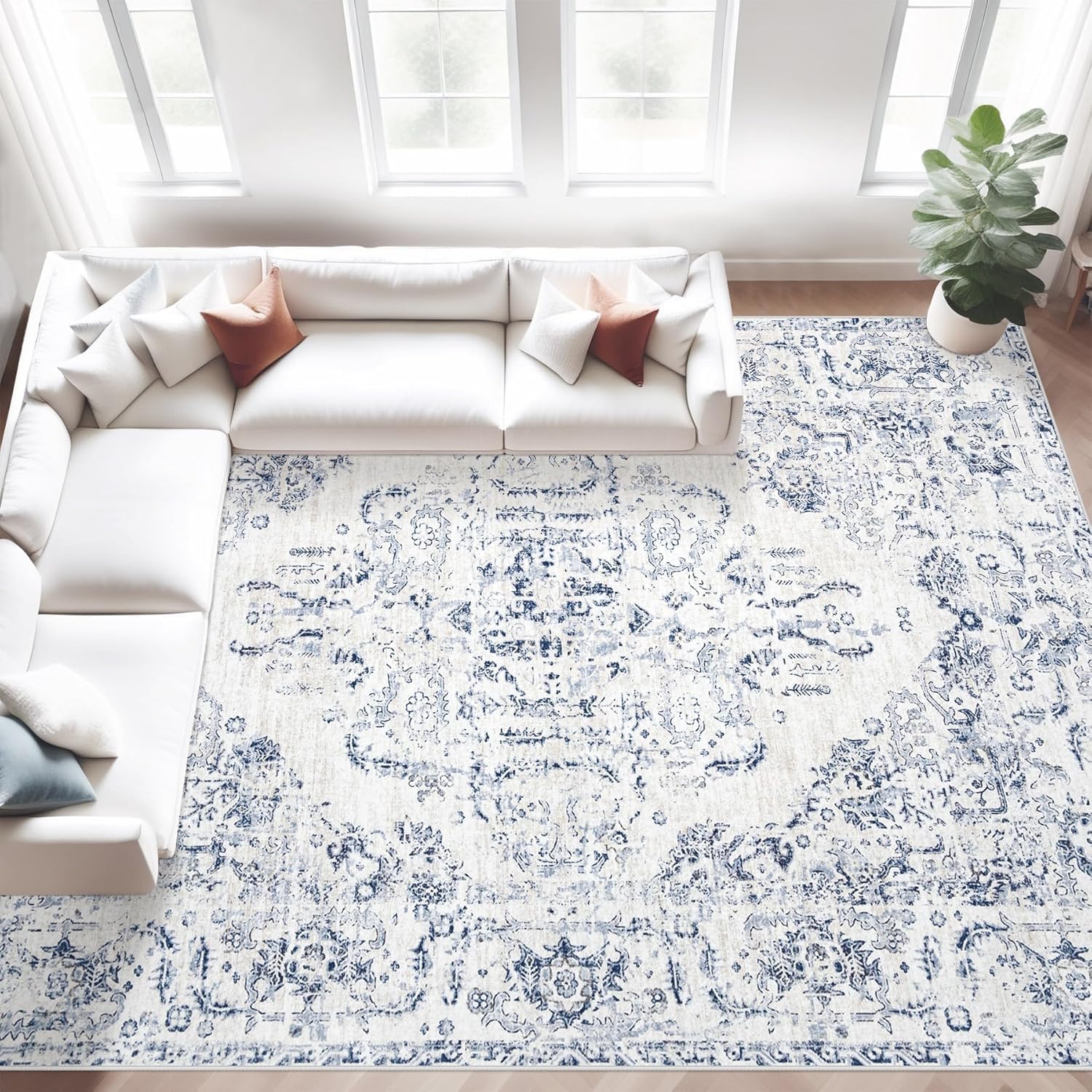 Alfombras de área de 270cm x 360cm para sala de estar: alfombra lavable vintage, alfombras grandes, suaves, antideslizantes, alfombra de pelo bajo, alfombra floral envejecida para dormitorio, comedor