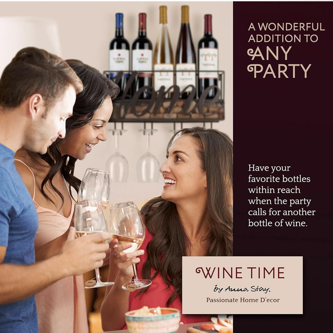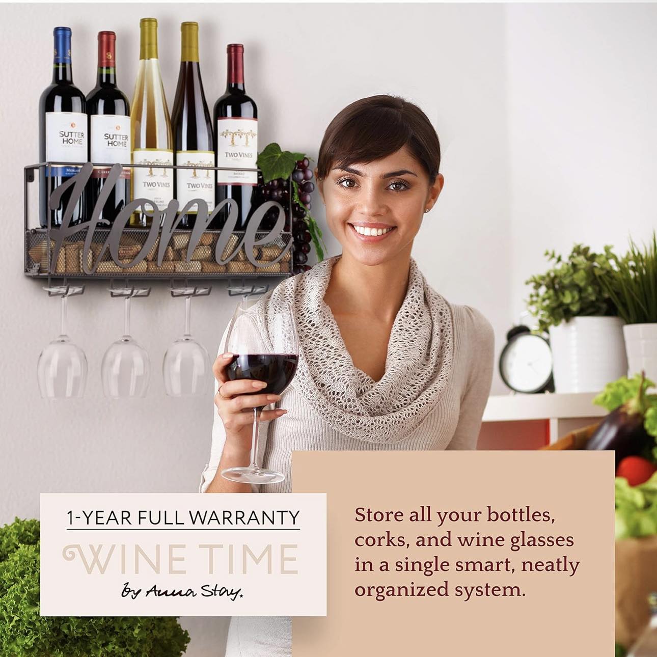 Estante de vino Anna Stay Estante de vino decorativo montado en la pared con soporte para copas de vino, inc. Almacenamiento de corcho y dijes de vino, regalos de vino con soporte para botellas de vino para decoración