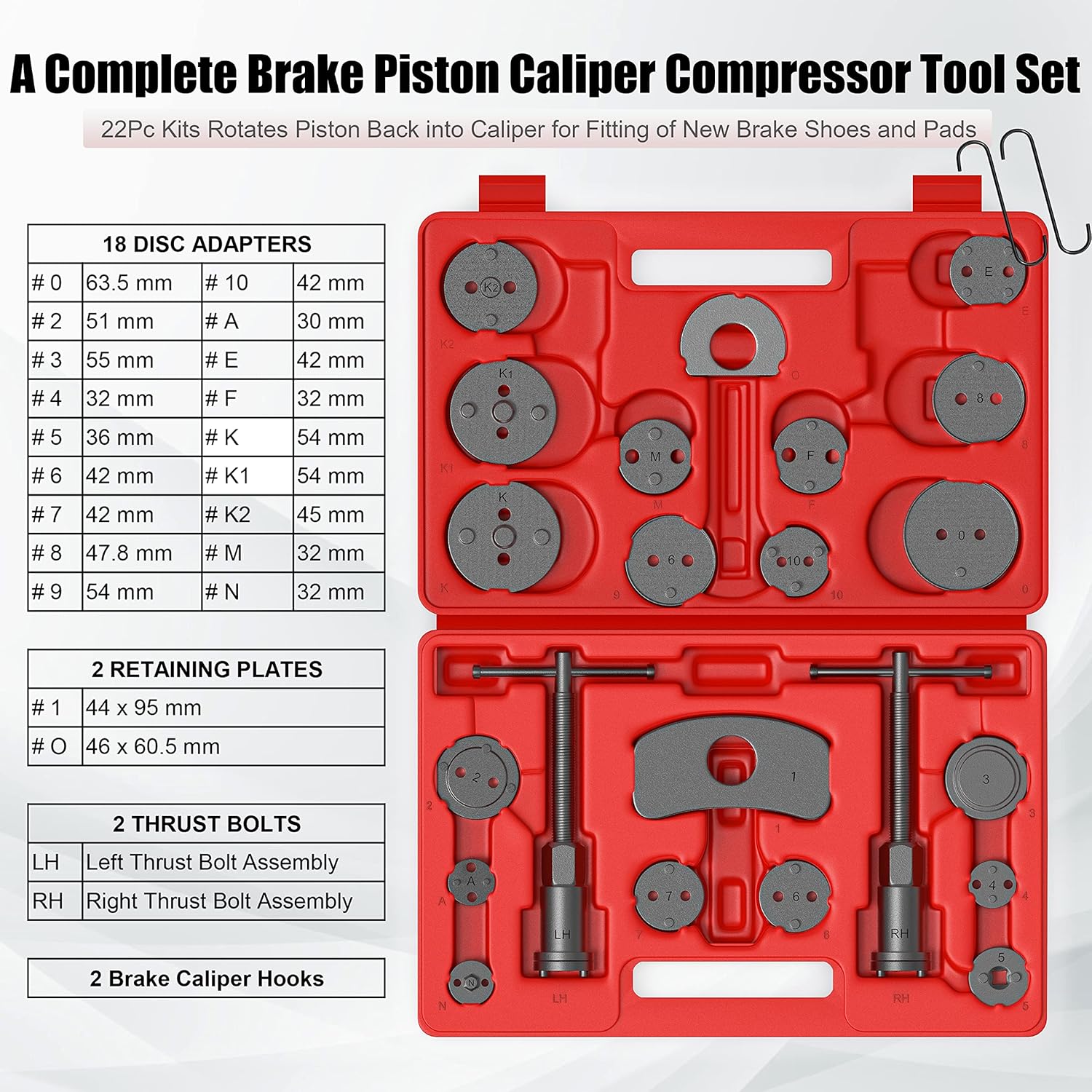 Herramienta completa para retroceder/“rewind” pistones de pinza al cambiar pastillas o discos. Compatible con la mayoría de autos y SUVs gracias a sus adaptadores incluidos. Trae husillos derecho e izquierdo para pinzas que giran en ambos sentidos y un maletín resistente para mantener todo ordenado. Ideal para mecánicos y entusiastas que hacen mantenimiento en casa.