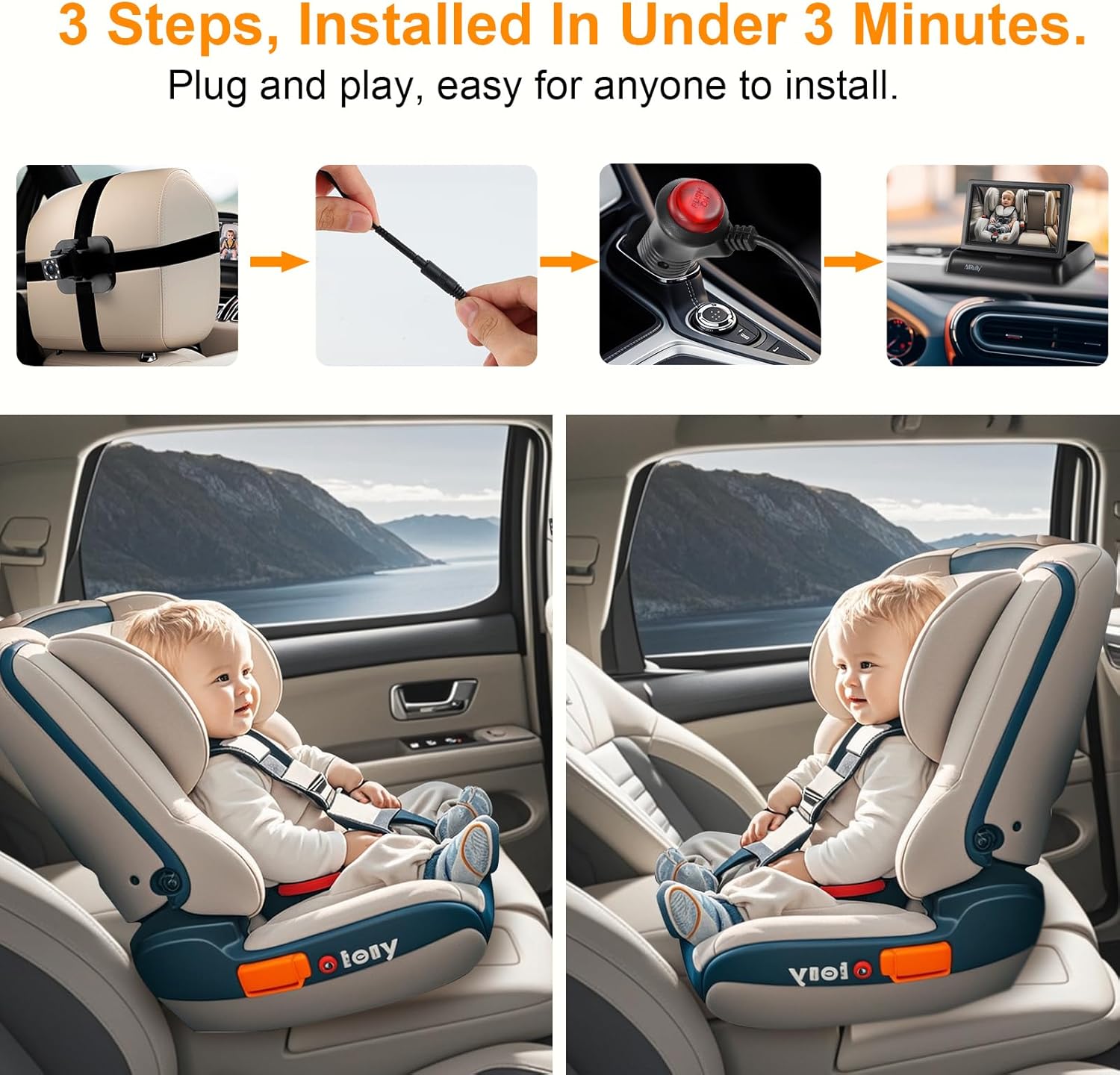 Monitor de cámara de coche para bebé, espejo de coche de bebé, pantalla digital, ver al bebé en el asiento trasero con amplia visión clara, dirigido al bebé, fácilmente para observar cada movimiento